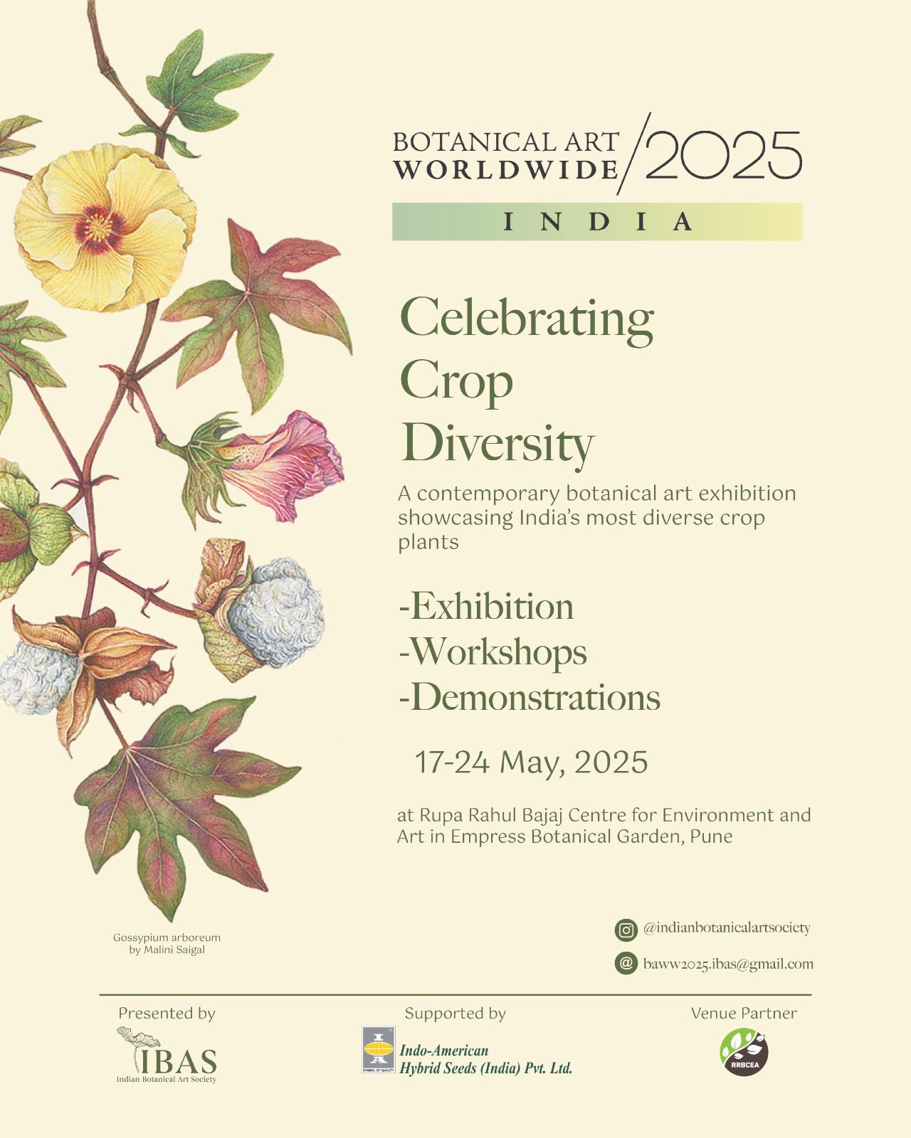 Rupa Rahul Bajaj Center for Environment and Art Empress Botanical Garden, Empress Garden, Kavade Mala, Ghorpadi,, Pune, Maharashtra, IndiaWe are pleased to announce a workshop by Avantika Shrivastav @artbyavantika at RRBCEA, Pune, in May 2025. Avantika is an accomplished botanical artist, an SBA Fellow and a founding member of the Indian Botanical Art Society.